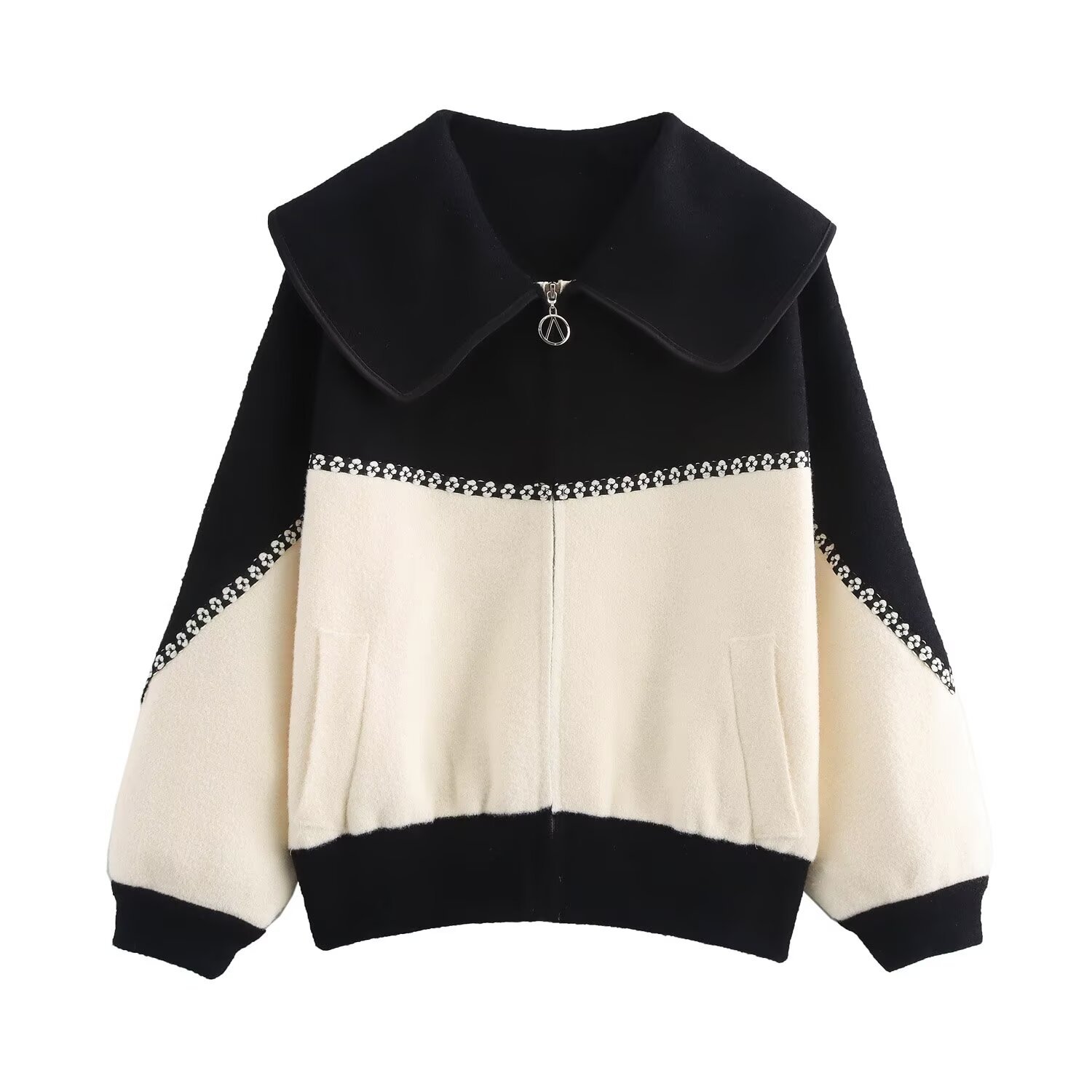 Be the first to review “Color blocking collar zipper knitted double-sided cardigan design loose sweater jacket for women”