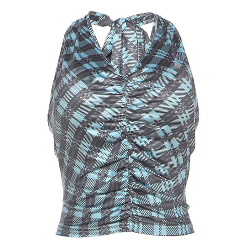 Be the first to review “Hanging neck scarf collar backless slim fit retro checkered vest T-shirt”