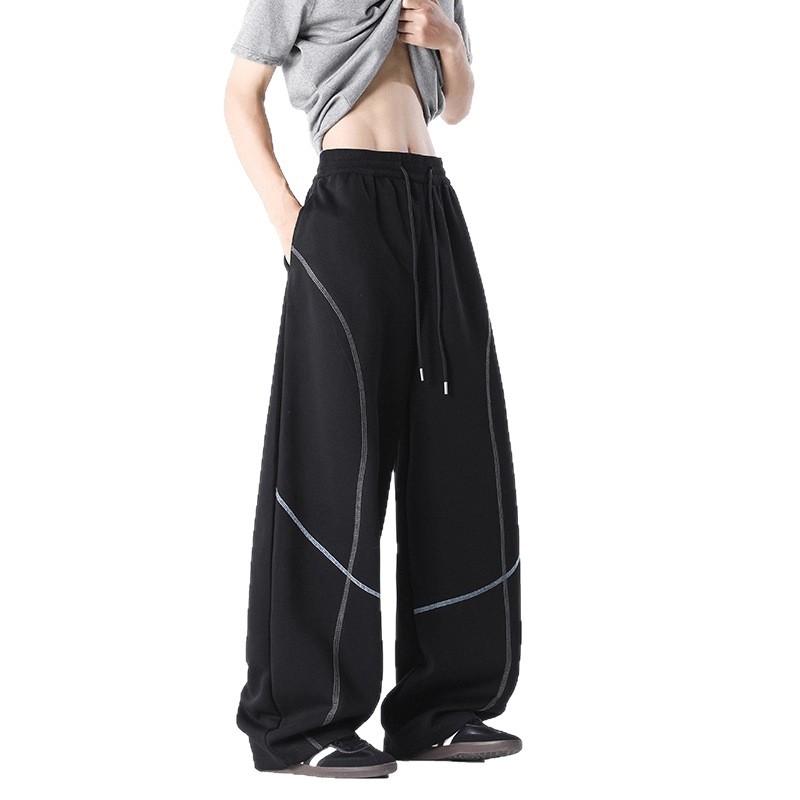 Heavyweight Stitched Wide-Leg Sweatpants for Men and Women, Autumn Fashion Brand, Loose Fit, Youth Casual Sporty Pants