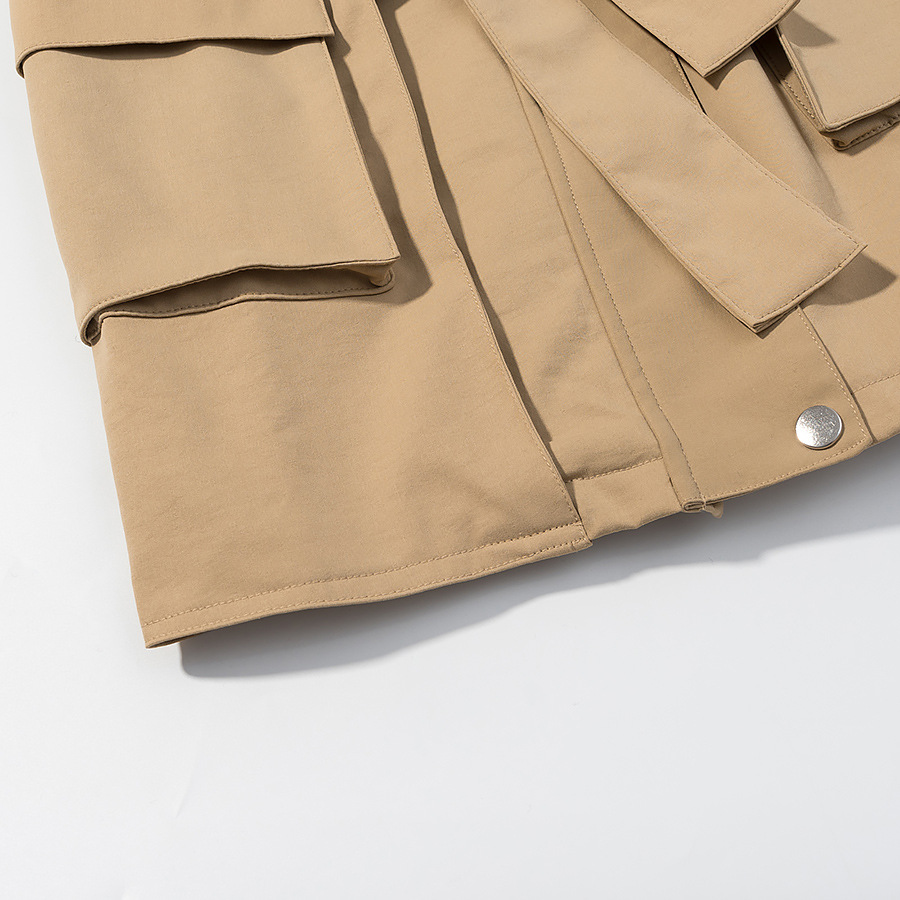 Be the first to review “Khaki medium long lapel waist tied windbreaker jacket”