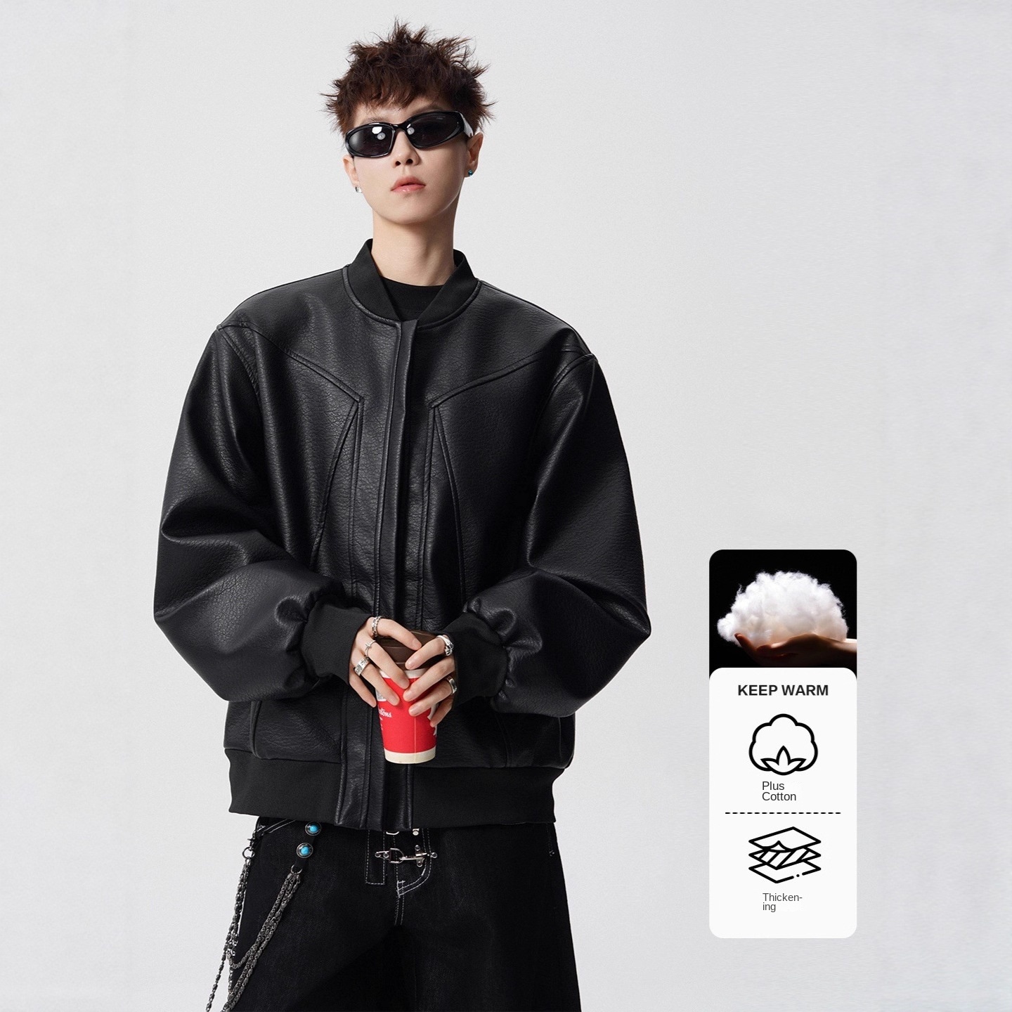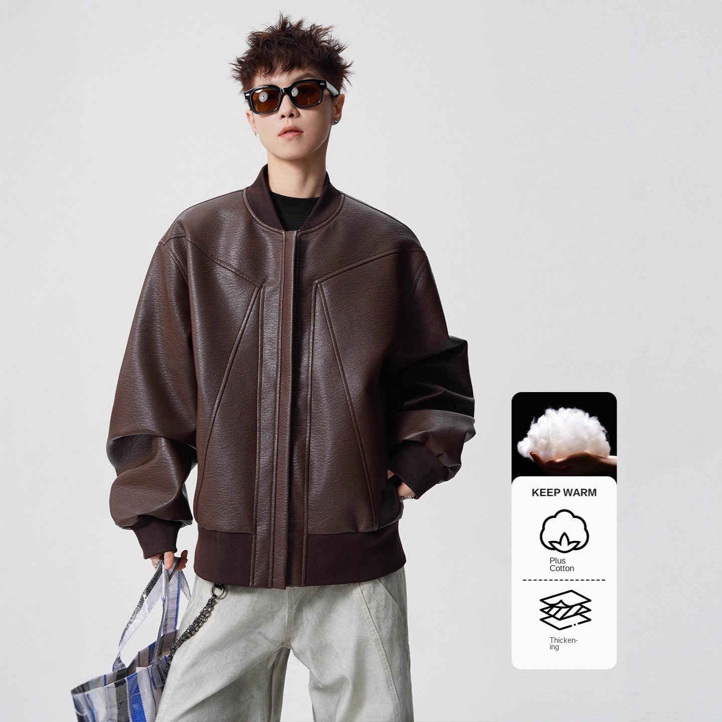 Be the first to review “Style Patchwork Baseball Collar Jacket for Men and Women Loose Casual Cotton-Padded Outerwear High Street Streetwear Stand-Up Collar Leather Jacket”